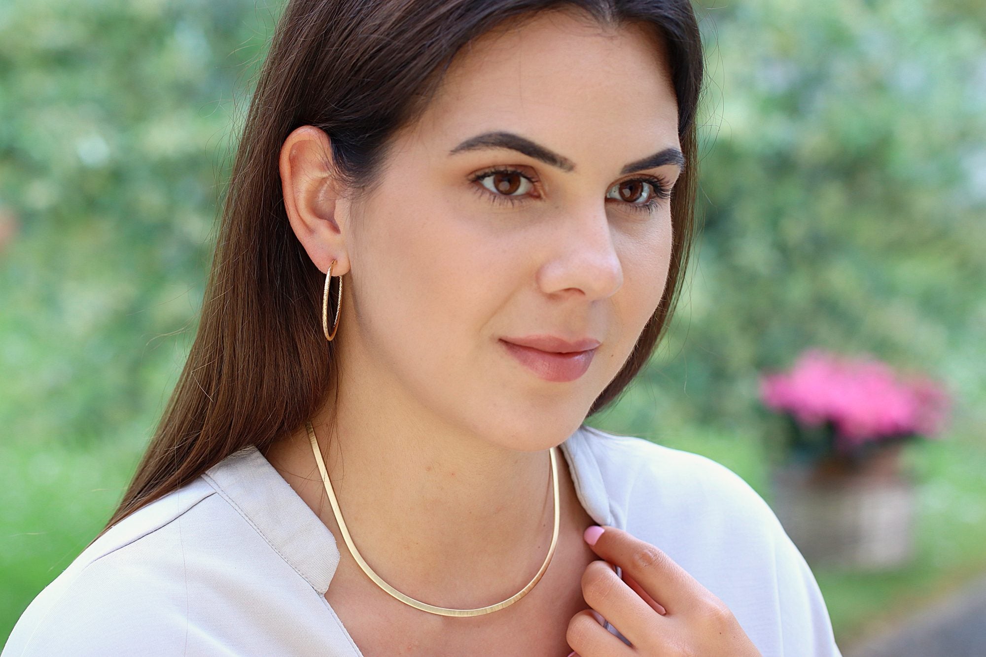 Beim Probetragen merkte das SILBERMOOS-Team sofort, wie angenehm sich der Halsreif anfühlt. Er präsentierte sich mit seinem Durchmesser von 11,5 Zentimetern als relativ halsnah. Wenn Ihnen eine Halskette mit einer Länge von 42 cm gut steht, dann wird Ihnen auch dieser Halsreif perfekt passen.